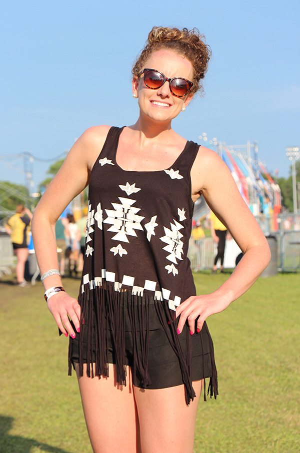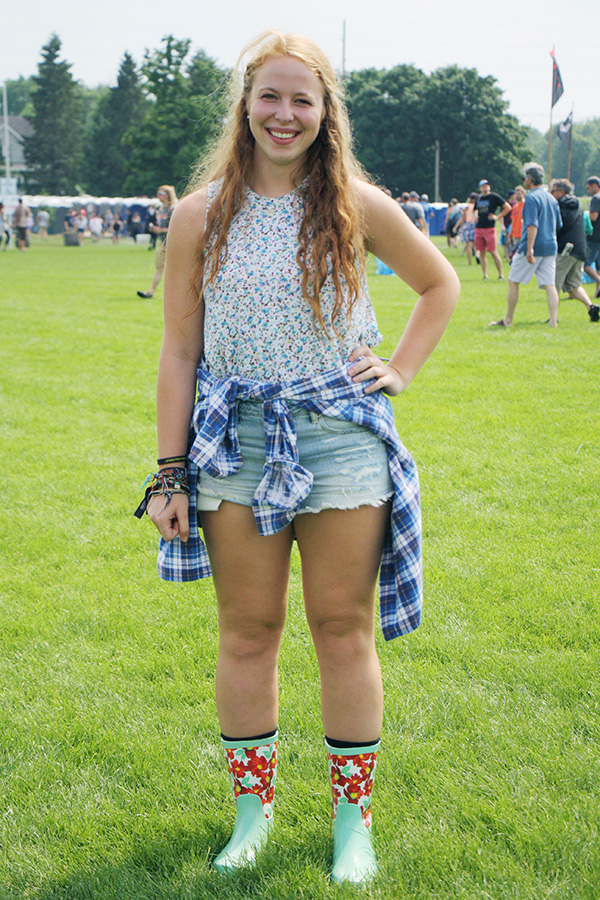 Cropped-tops, tie-your-jacket around the waist, fringe, floral tops, and high-waists dominated the third and final day of the festival. Rain boots were also seen around the venue since the ground was muddy from the rain. Fanny packs also made a come back. Festivalgoers were so excited for the all performances, especially for the Grammy award winning band, Mumford and Sons. It has been a wonderful feeling to see Waverly being flocked by some of most well-dressed people! Here are the best pick styles and fashion statements on the third day of the festival.