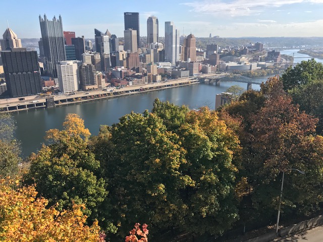From the overlook, you can see a stunning view of the City of Pittsburg and where the three rivers meet: the Allegheny, Monongahela and Ohio. This point is the closest and clearest overlook of the city. You can also go to West End which is a little bit further from downtown and get a similar view. You can also take a cable car to the overlook. Two ways ticket is $5.