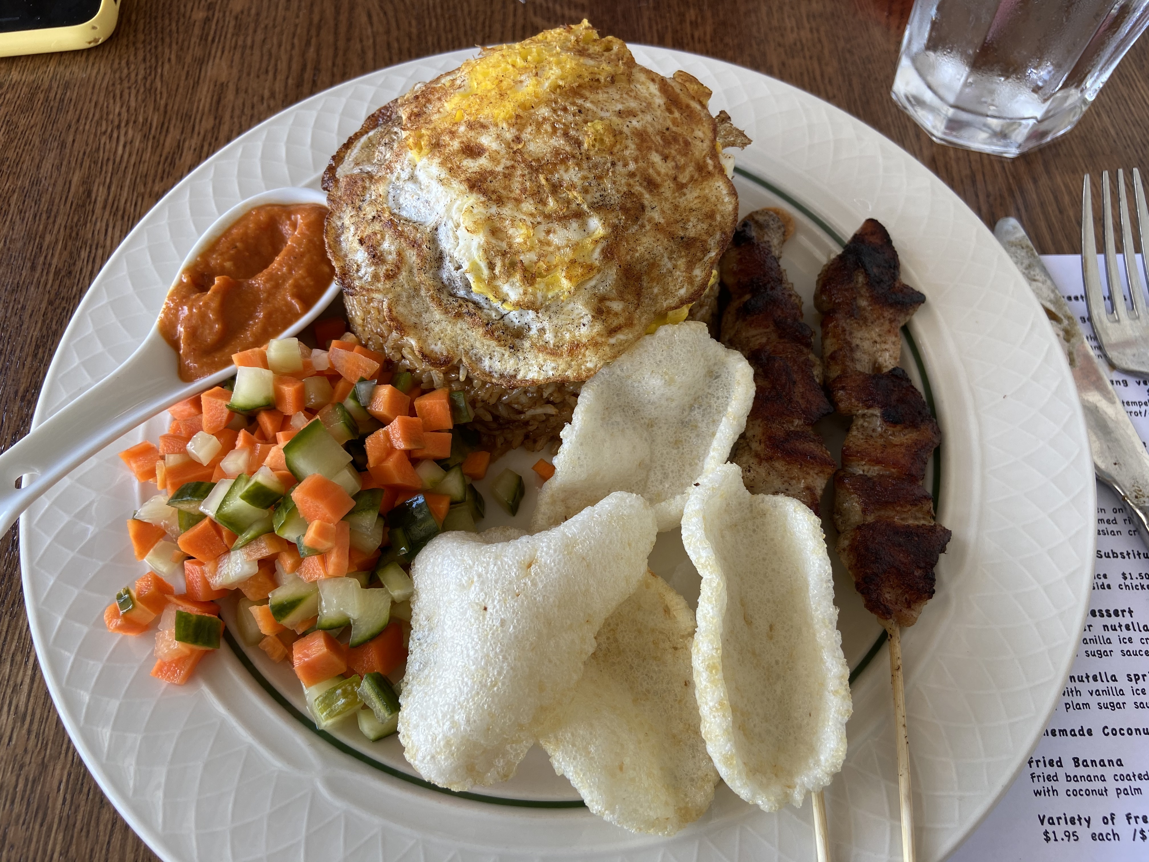 Fried rice is the quintessential dish in many Southeast Asian countries. It is a comfort food. In Indonesia, for example, you can have it for breakfast, lunch, and dinner. It’s always served with an egg, either scrambled or sunny side up with a side of krupuk (garlic or prawn flavored rice crackers). Fried rice or as known in Indonesian – nasi goreng – is a staple equivalent of Pho for many Vietnamese. For Thai people, Thai fried rice is known for its great use of basil. For those in Malaysia and Singapore, their fried rice is also known for a curry-based flavor or having a mix of seafood.