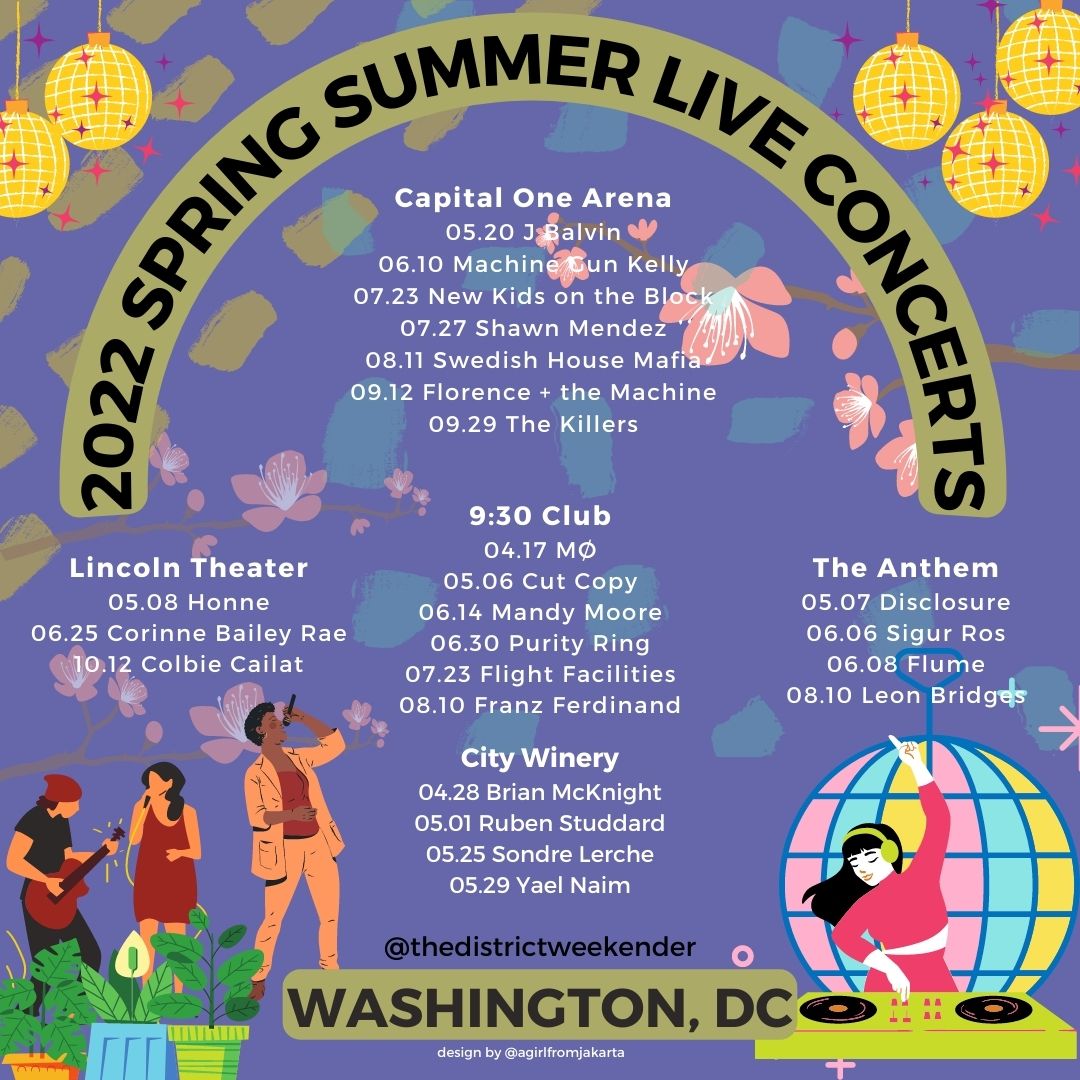 After two years of hiatus in many DC concert venues, summer 2022 will finally be the first summer where people can feel ‘normal’. In fact, most music venues in DC proper (sorry Vienna and Landover, they are not on the list) have full lined up every week. From country, to soul, indie, to pop, you name it. All the Top 100 Billboards artists are not skipping the nation’s capital to perform this year. Some tickets for artists such as Olivia Rodriguez, and Sofi Tukker were already sold out, but they are so many other great singers and performers that are waiting for us to frolic and feel alive again! We curated artists from five different music venues for you. You can save the image put in your phone as a reminder. Enjoy!